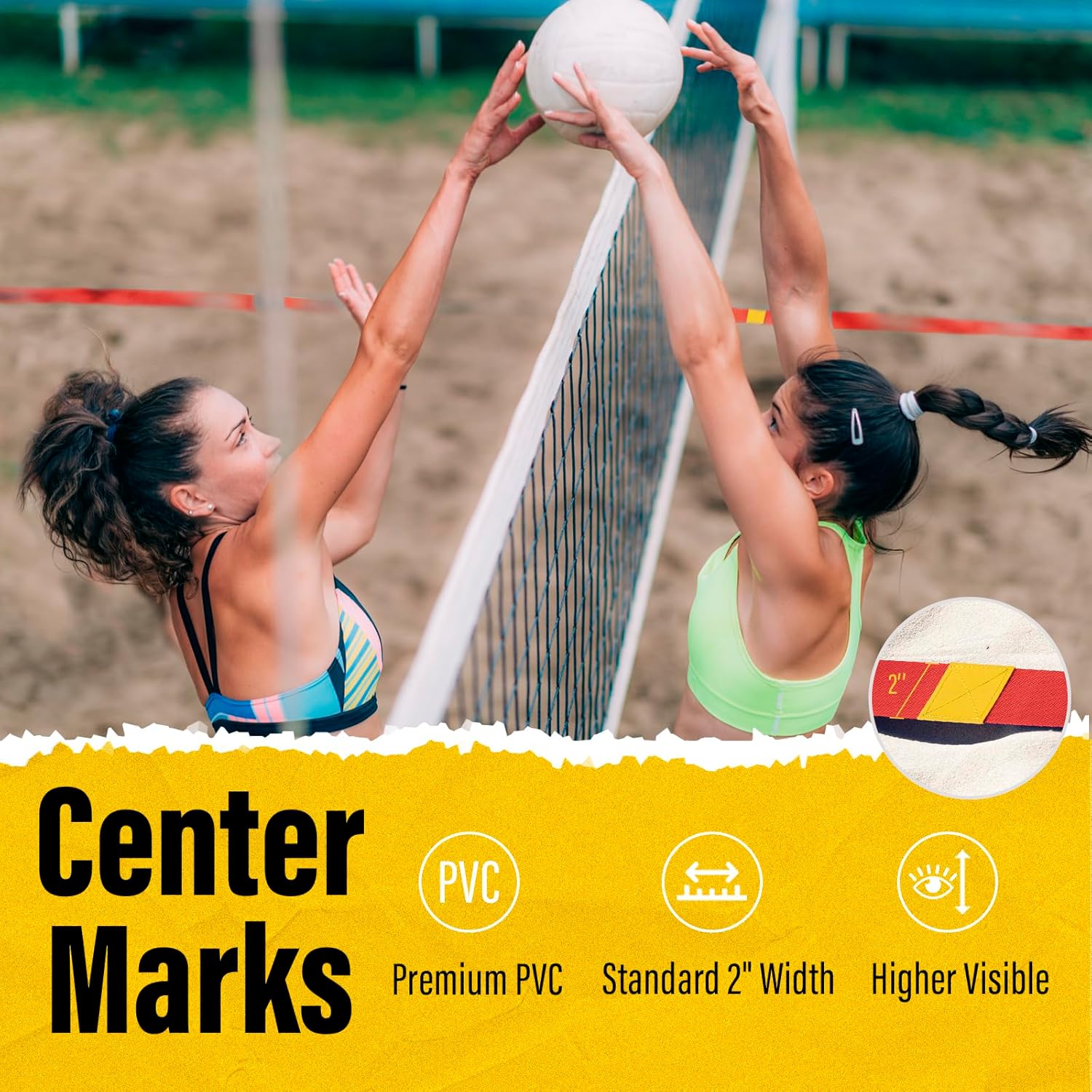 【Durable All-Weather Performance】Experience superior beach volleyball with our sand volleyball lines doubles made from rip-resistant nylon, which is UV and weather-resistant, ensuring longevity and vibrant colors through all conditions