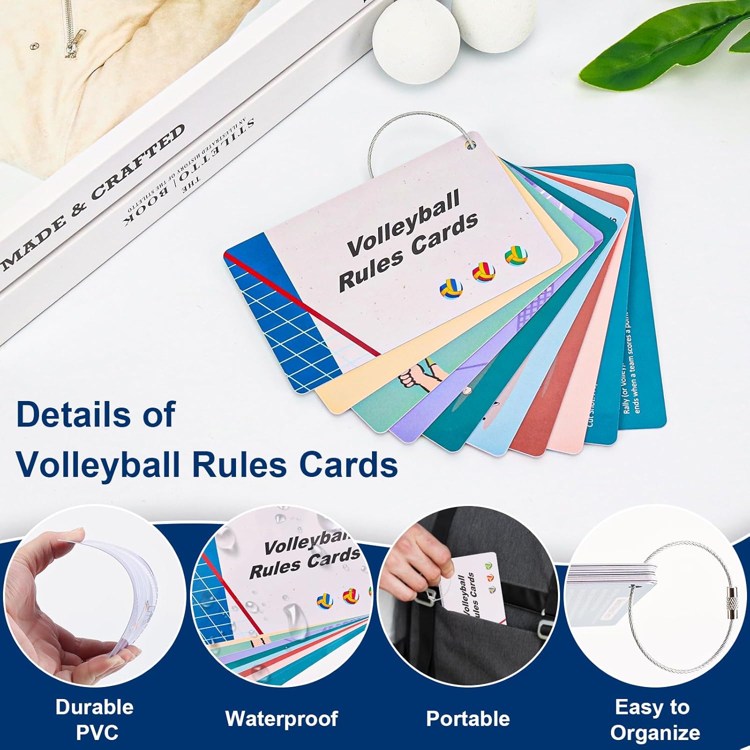 2.Portable and Easy to Study:Each volleyball coaching stuff card measures 3×5 inches, making it easy to carry and accessible for learning volleyball rules anytime, anywhere. The cards of volleyball training accessories are pre-punched with holes and come with a sturdy steel wire keychain for easy detachment, allowing you to hang the volleyball rules cards on your keychain or bag and be ready to learn and share volleyball knowledge at any moment.