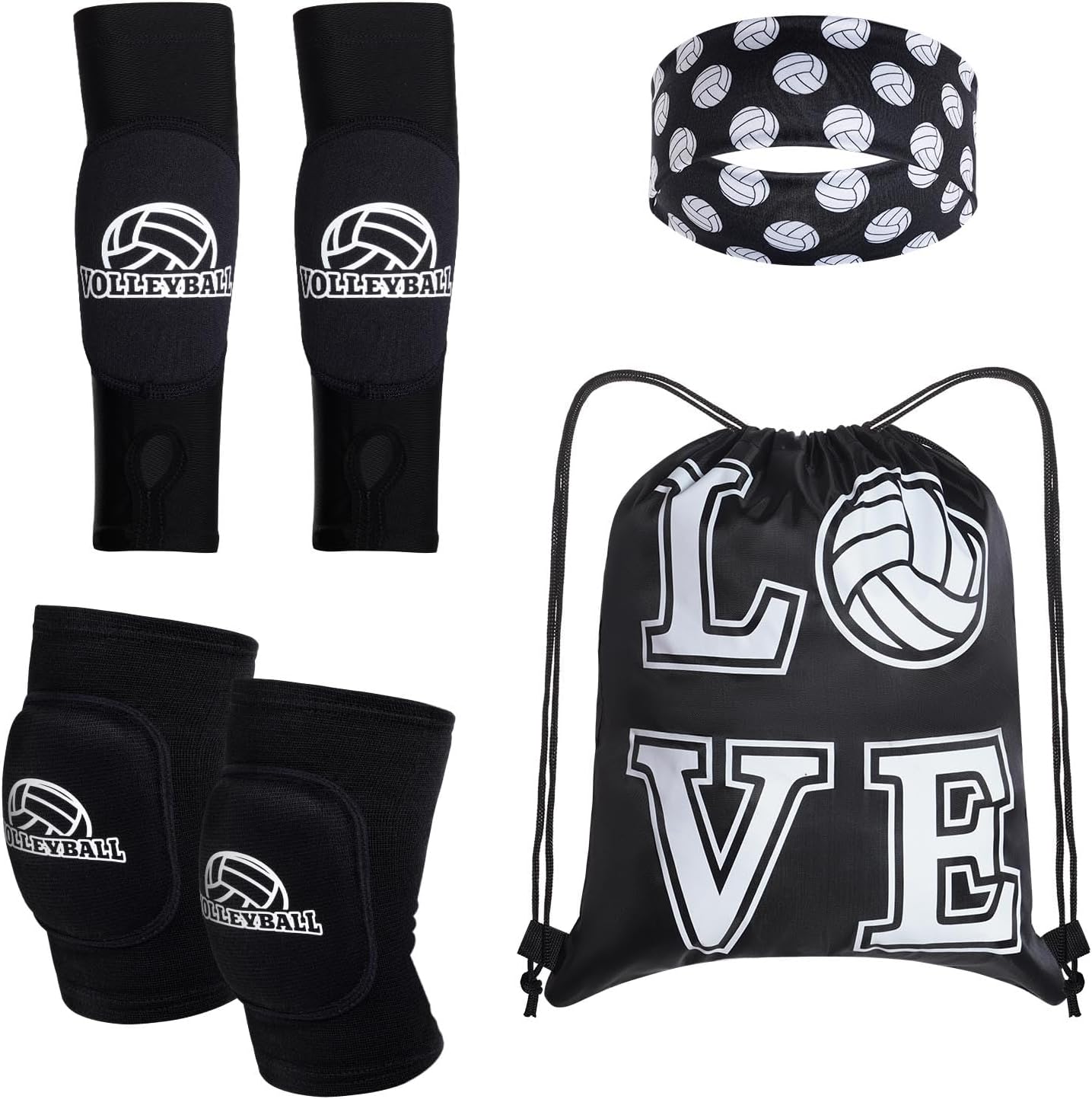 Volleyball Accessories Set: Package include 1 pair volleyball arm sleeves, 1 pair volleyball knee pads, 1 piece volleyball drawstring bag, 1 piece volleyball softball headband, perfect volleyball training equipment combination for women youth teen girls.