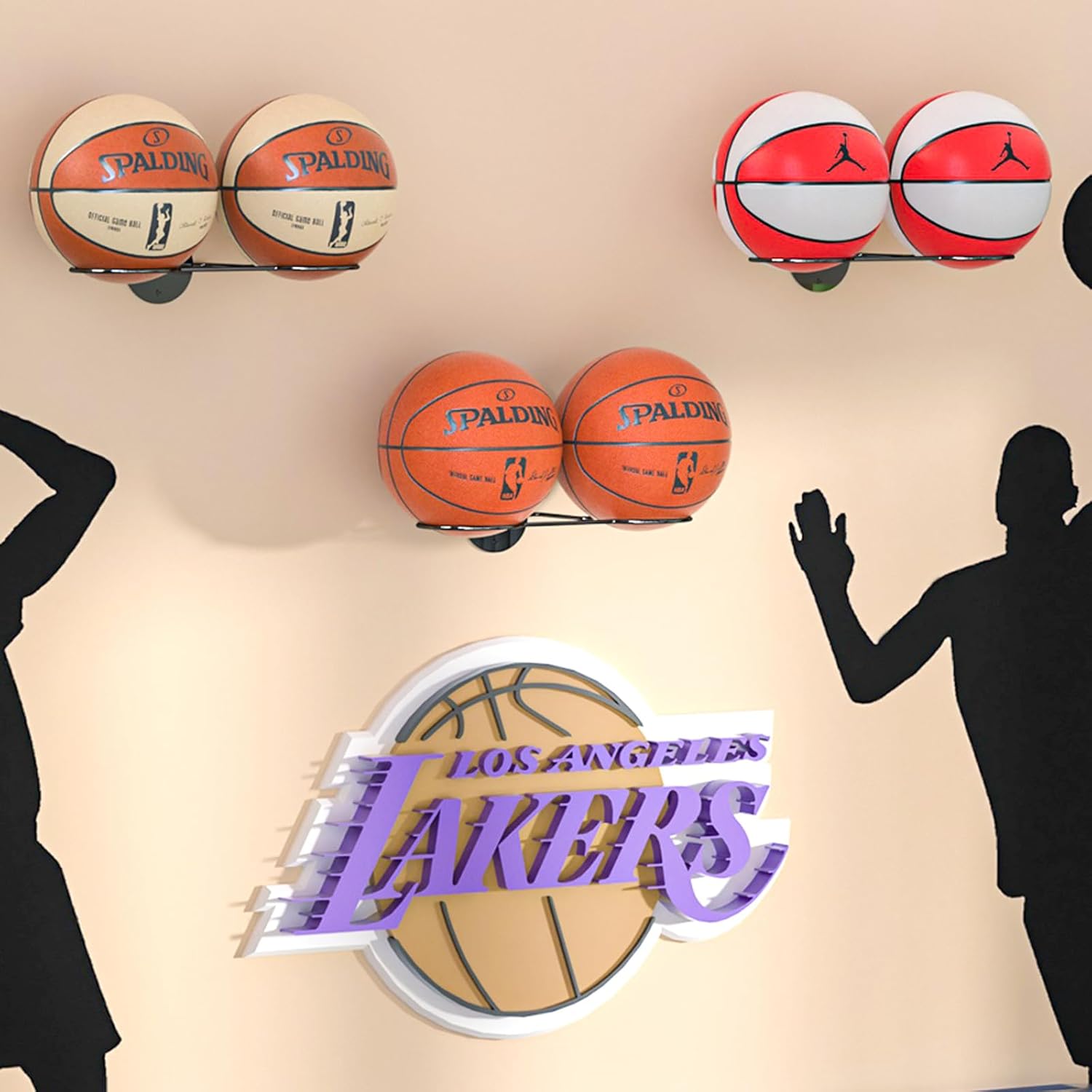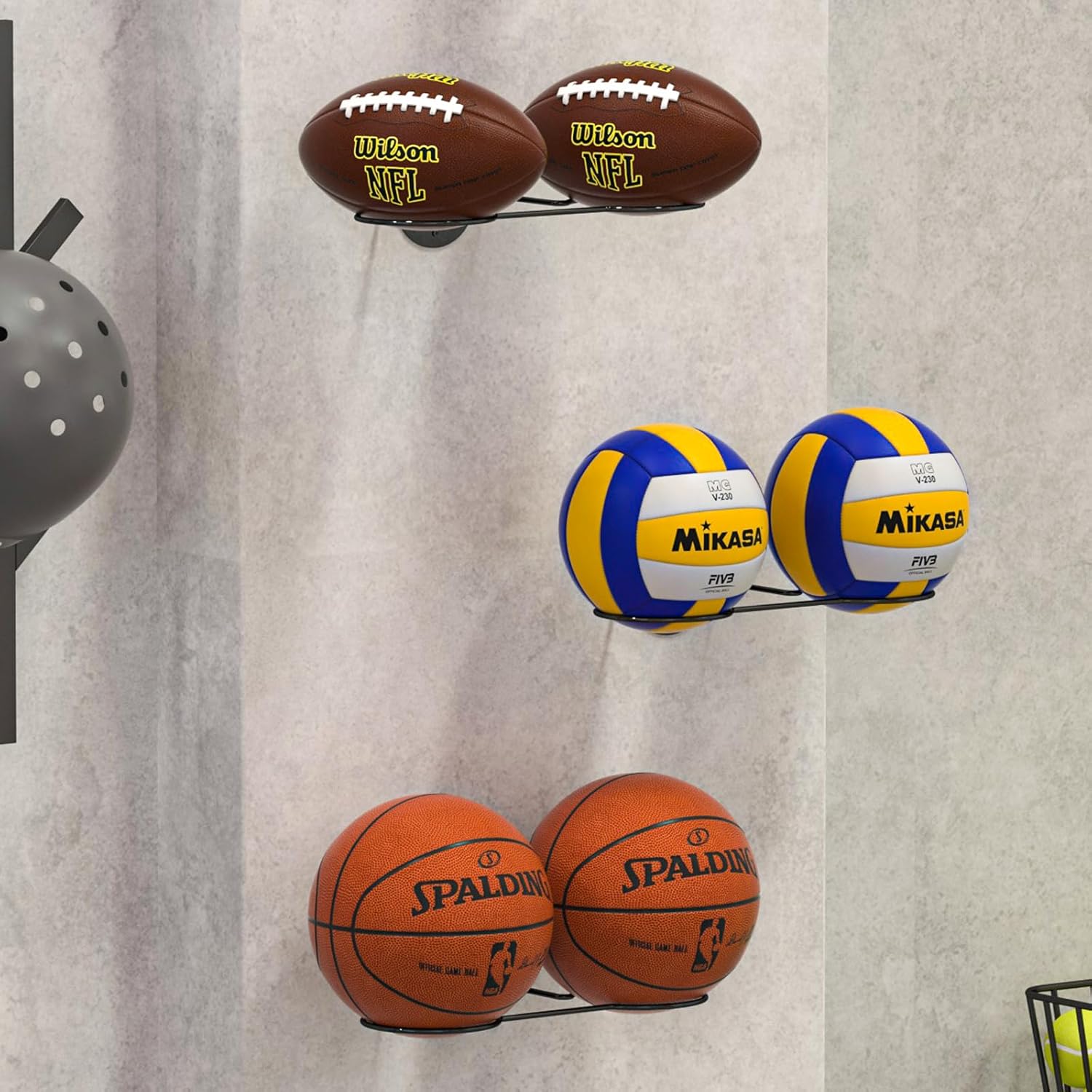 GOOD QUALITY: This wall-mounted ball rack is made of metal material, stable structure, not easy to shake, and the surface has anti-rust coating for durability. The overall size of the ball rack is 15.75*3.9*2.36(inch).