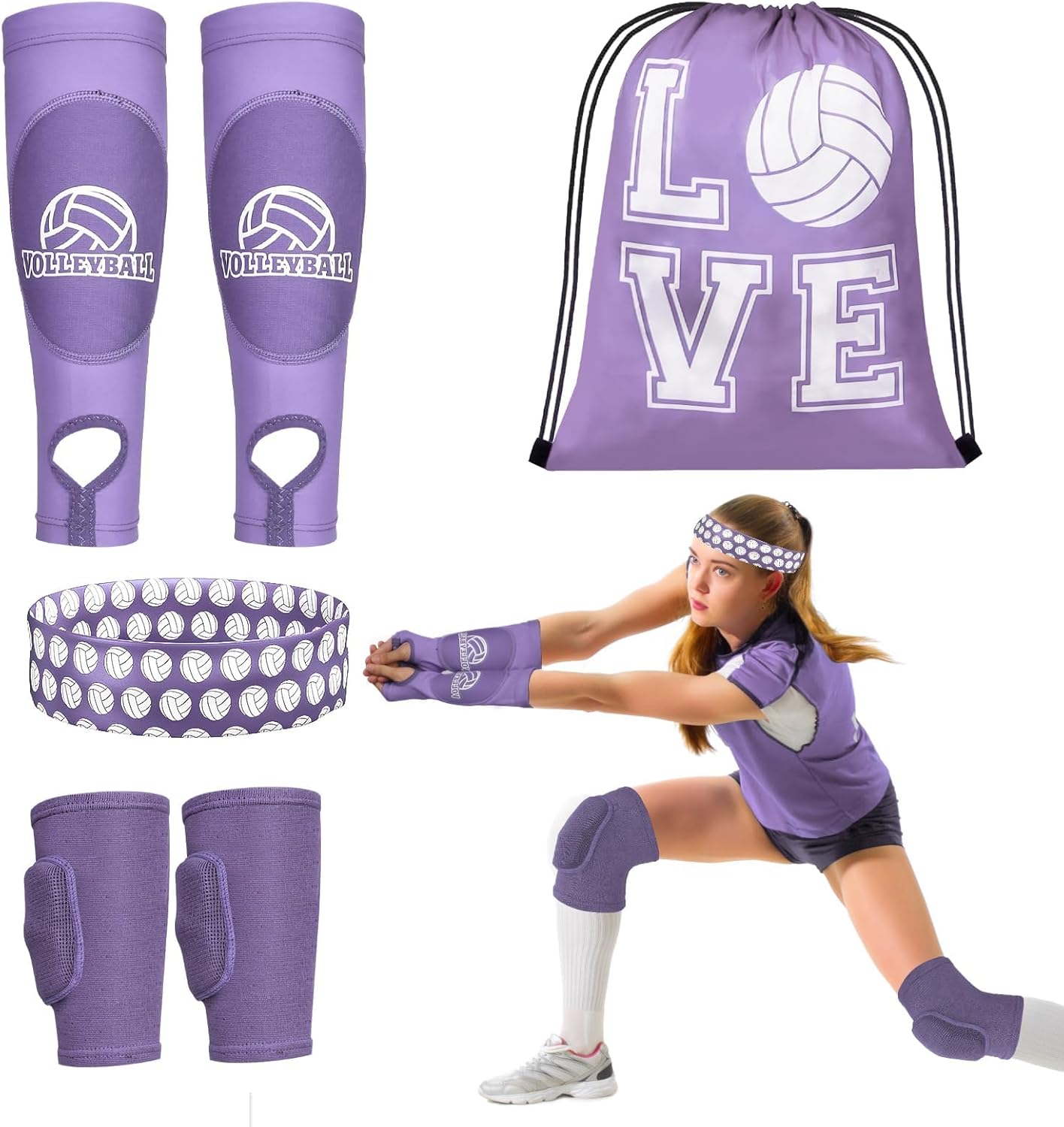 [Volleyball Accessories Set]: You will get 6 Pcs Volleyball Accessories Kit. 1 pair volleyball arm sleeves, 1 pair volleyball knee pads, 1 piece volleyball drawstring bag, 1 piece volleyball softball headband, a nice combination set to satisfy your daily training demands.