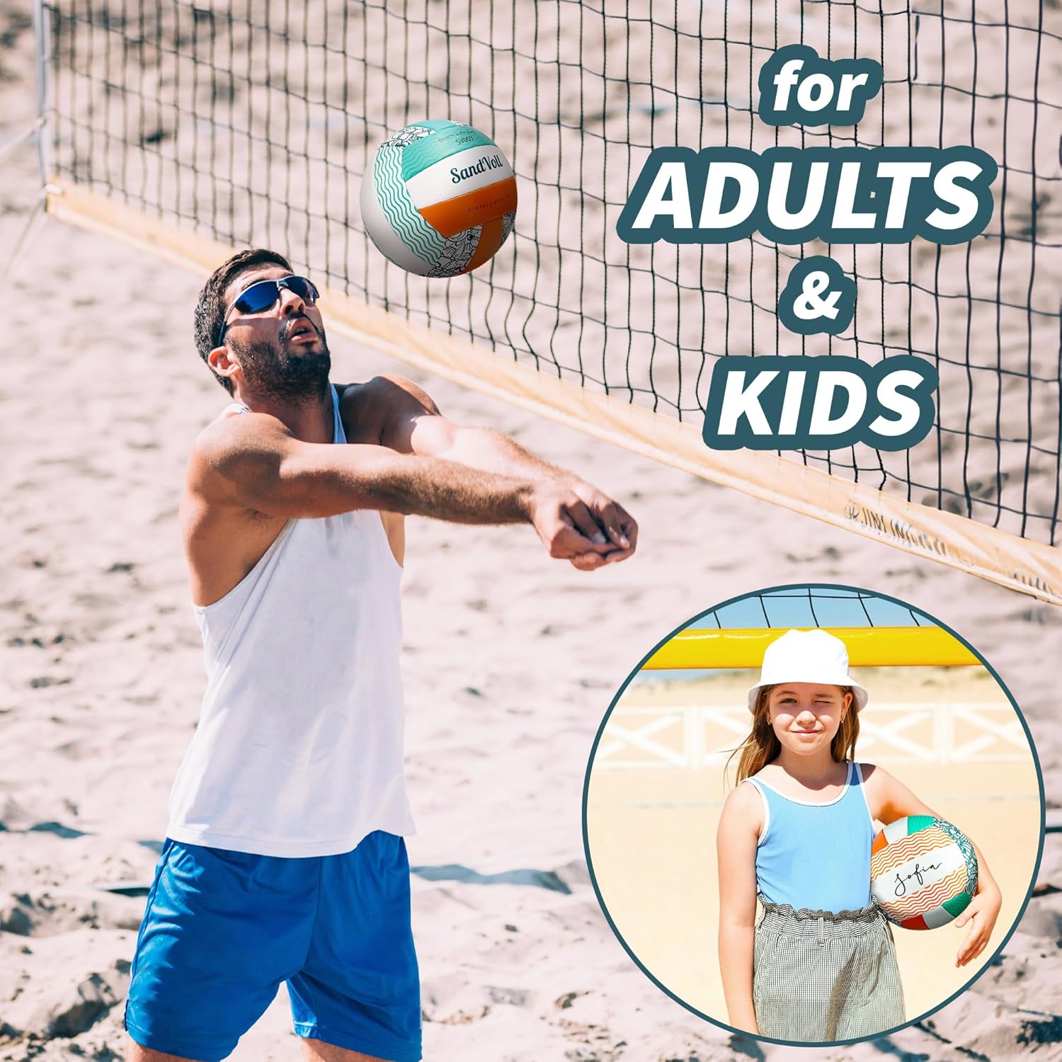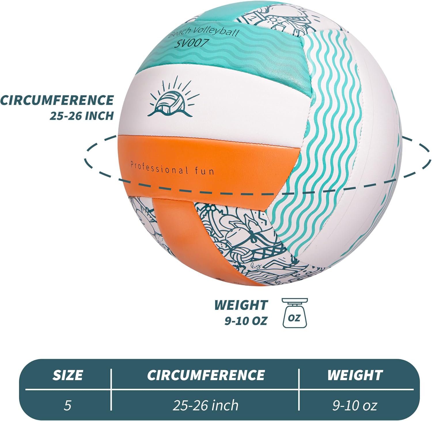OFFICIAL SIZE: Meets regulation size specifications for beach volleyball at a diameter of approximately 8.15-8.39 inches.