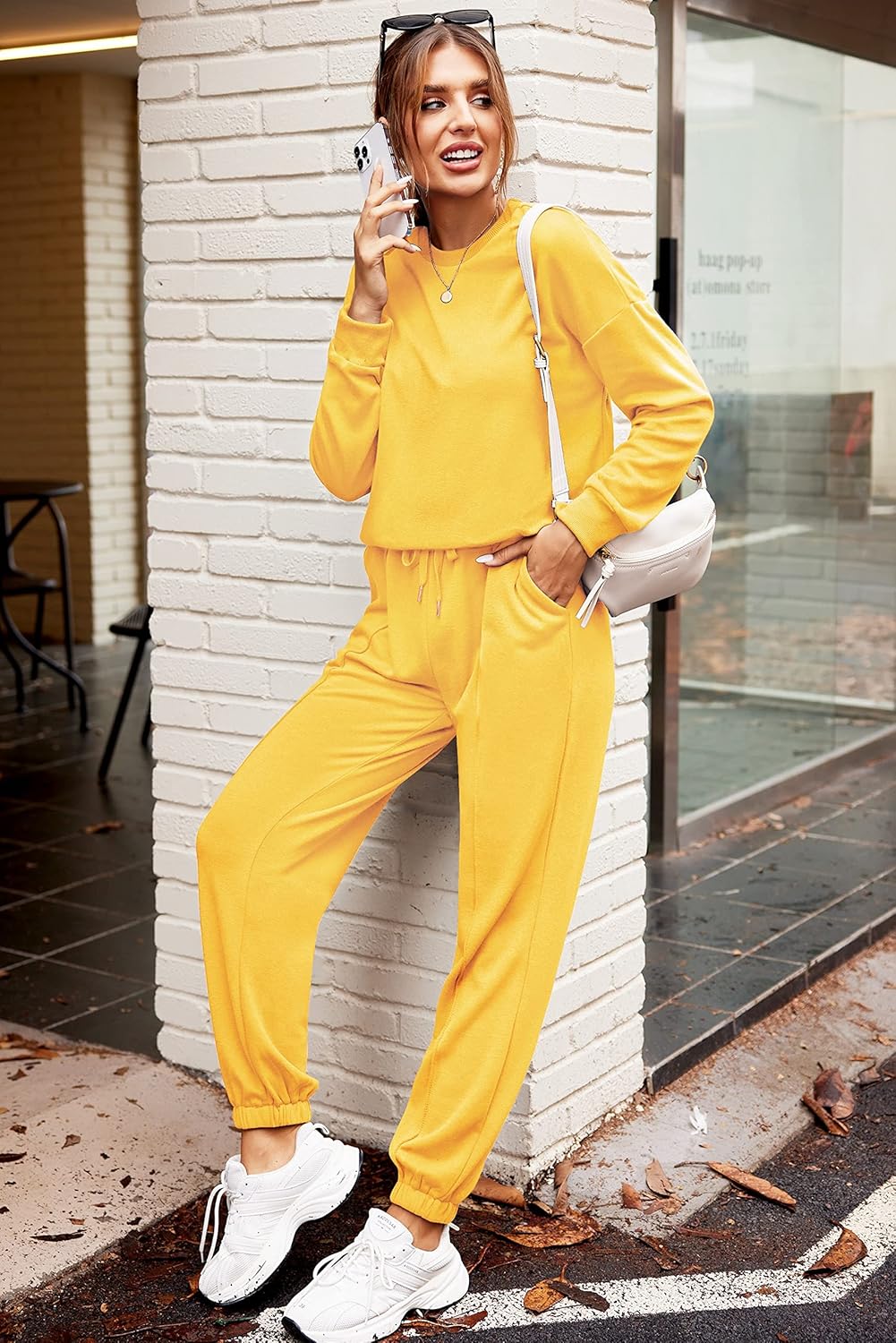 HOTOUCH 2 Piece Fleece Sweatsuit for Women Casual Outfits Leisure Suit 2 Piece Jogging Suit Outfits Drawstring Sweatpants with Pockets2 Piece Jogging Suit Outfits Drawstring Sweatpants with Pockets