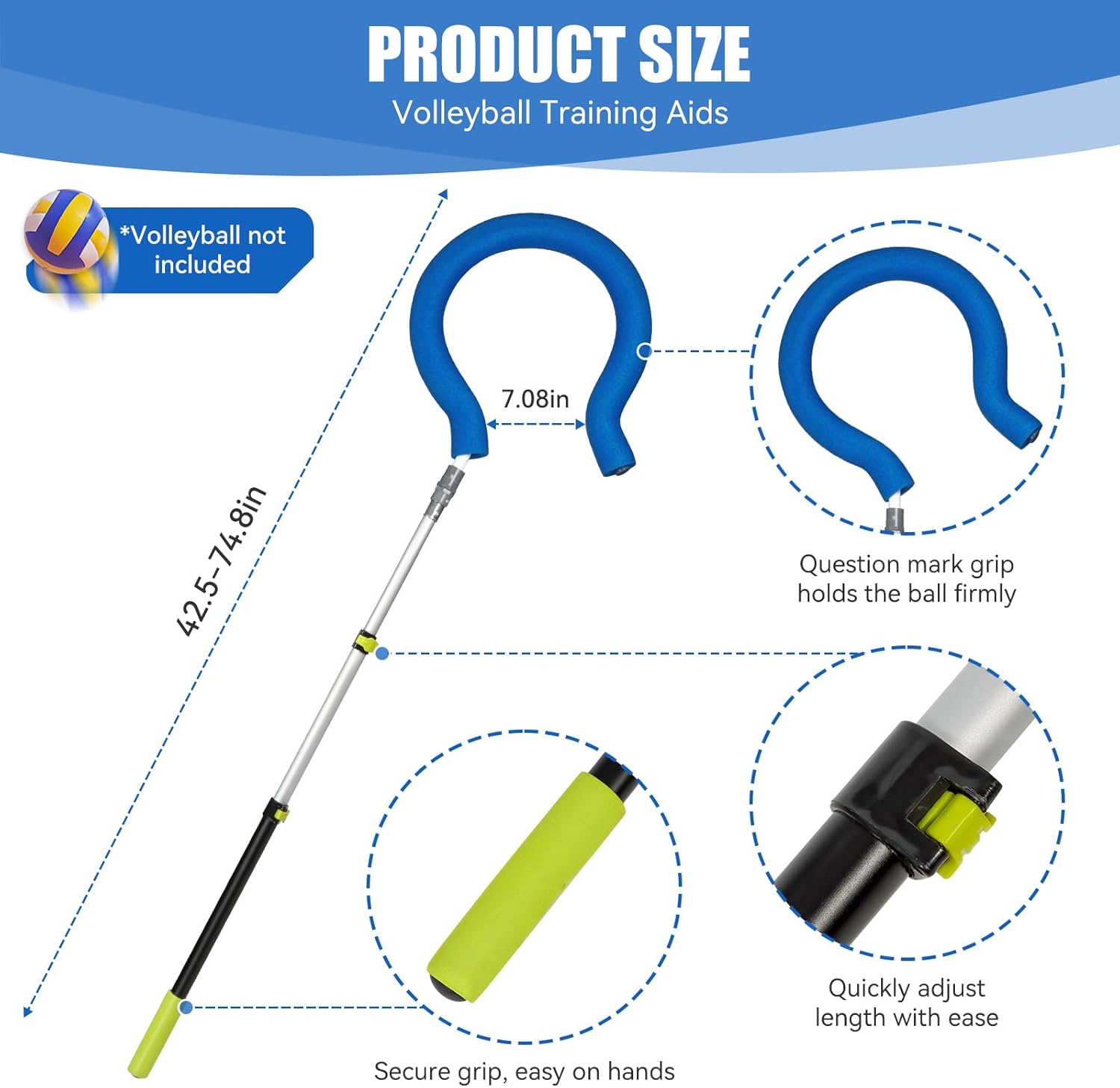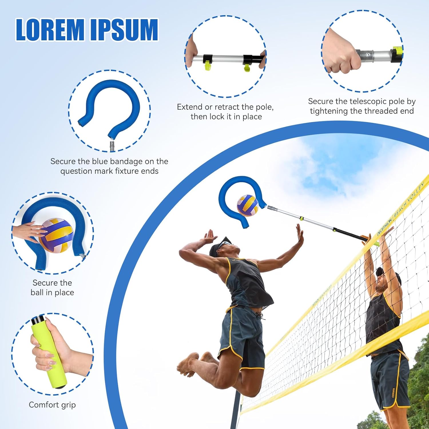 【Durable and Comfortable】Made from lightweight, durable aluminum alloy, this volleyball training equipment ensures long-lasting use, while the sponge-wrapped ball clamp and handle provide excellent grip and stability during training.