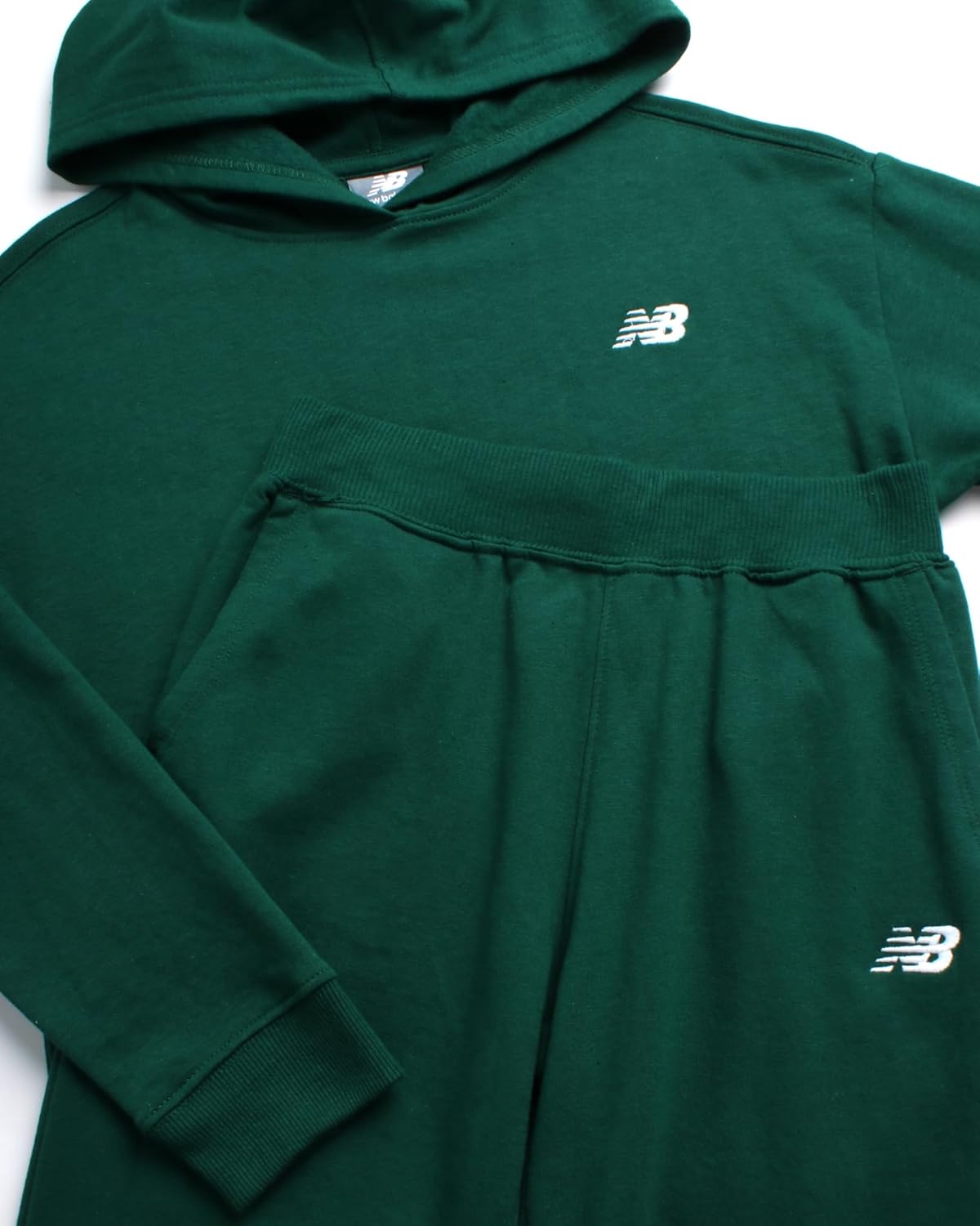 Upgrade your girl’s wardrobe with the New Balance Girls’ Hi-Lo Jog Set, designed for comfort, style, and functionality. This two-piece set includes a cotton blend fleece hoodie with a trendy hi-lo design and matching joggers. The hoodie features a drop shoulder cut and a kangaroo pocket, offering a stylish look and practical storage. The joggers come with an elastic waistband and slant pockets, making them perfect for everyday wear. Crafted from a soft cotton blend fleece, this set ensures warmth and comfort, whether your girl is at school, playing with friends, or relaxing at home. The durable fabric is machine washable, maintaining its softness and vibrant colors wash after wash. Available in a variety of colors and sizes, this set is perfect for girls aged 7-16, providing a comfortable and stylish option for any occasion. Embrace the perfect blend of fashion and function with the New Balance Girls’ Hi-Lo Jog Set.