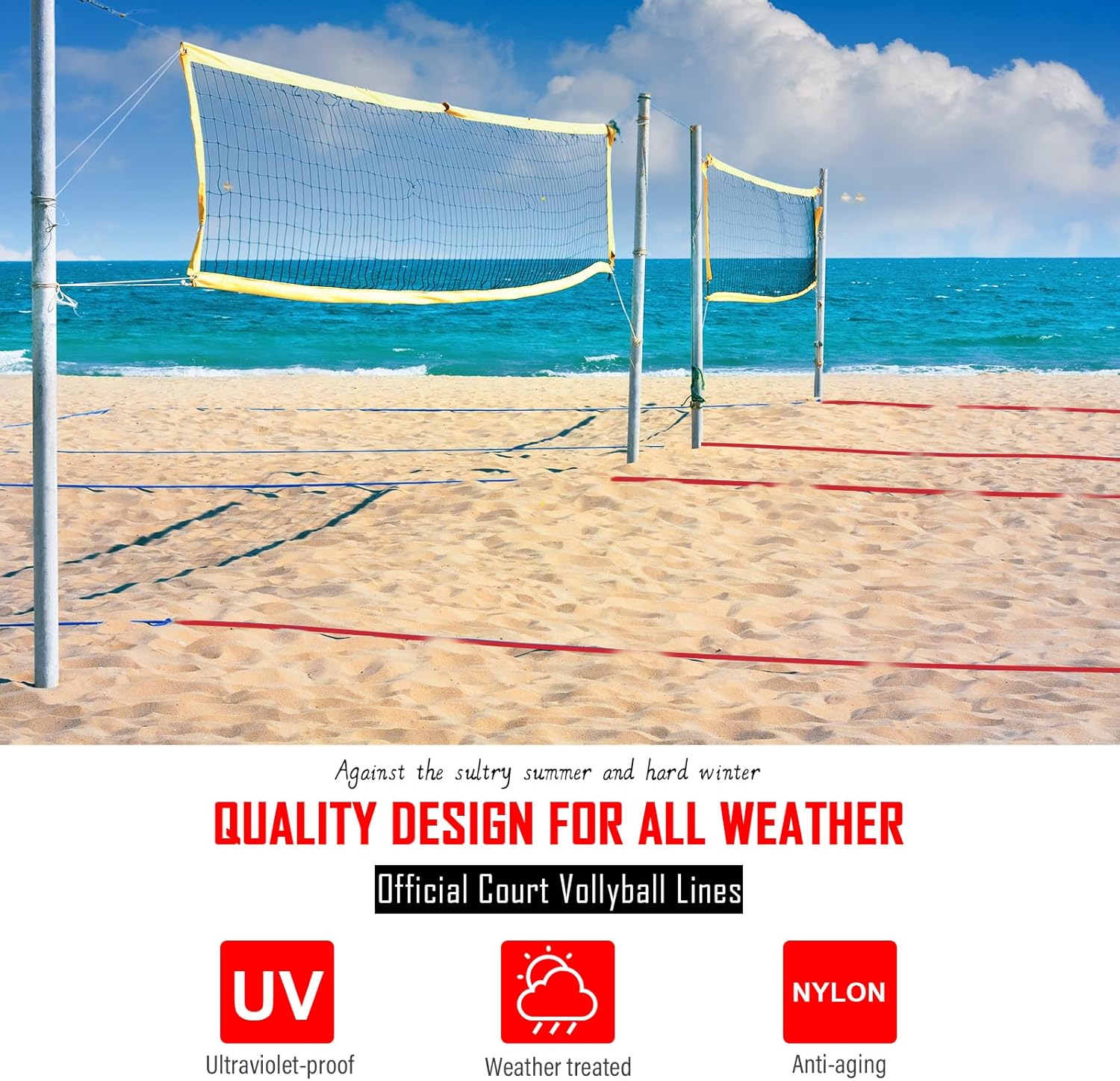 【Reinforced All-Weather Suitability】Upgrade Your Game with Our All-Weather beach volleyball lines for sand! Superior rip-resistant nylon construction makes it UV, anti-aging, and weather-resistant, ensuring a longer life span and vibrant colors through all weather conditions