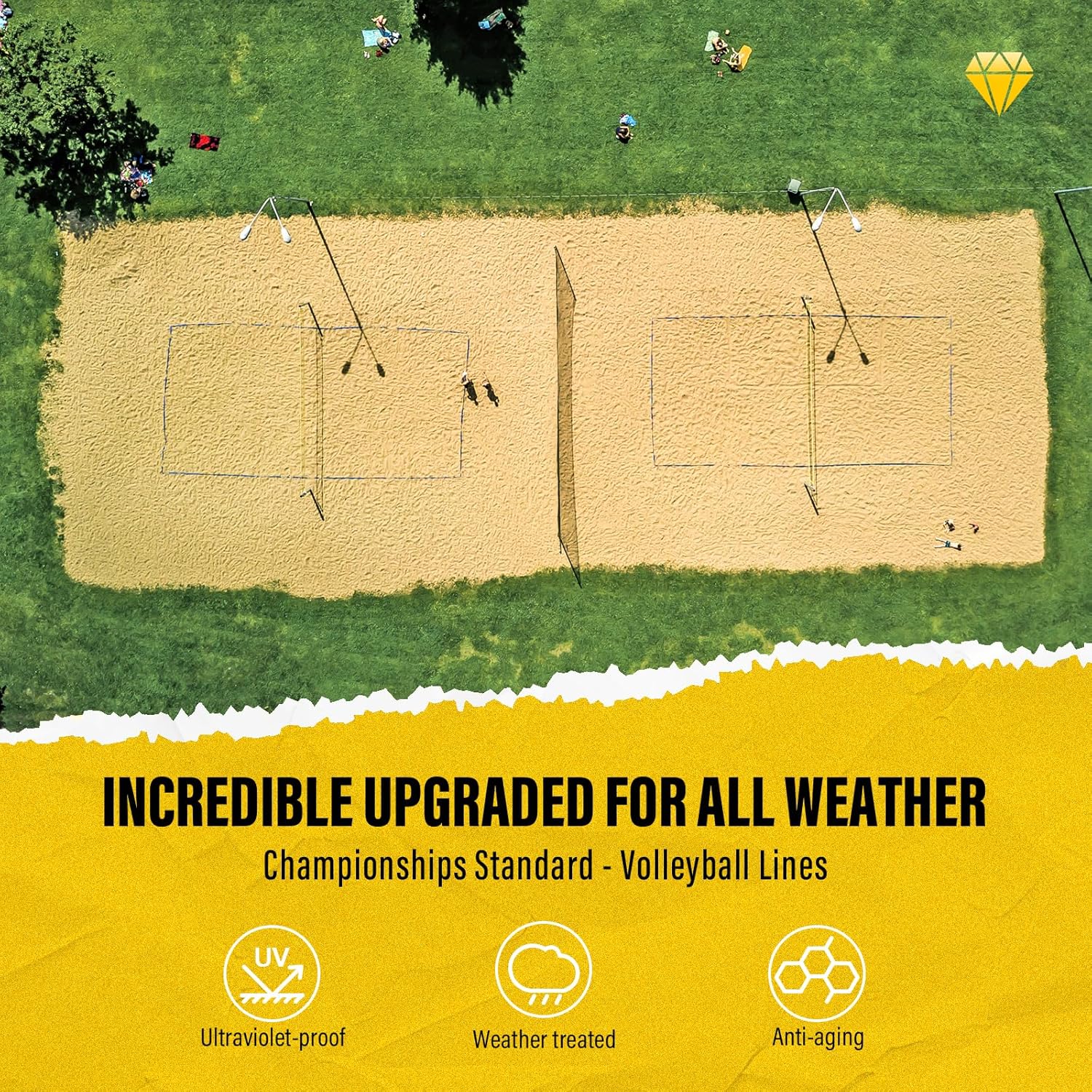 【Durable All-Weather Performance】Experience superior beach volleyball with our sand volleyball lines doubles made from rip-resistant nylon, which is UV and weather-resistant, ensuring longevity and vibrant colors through all conditions
