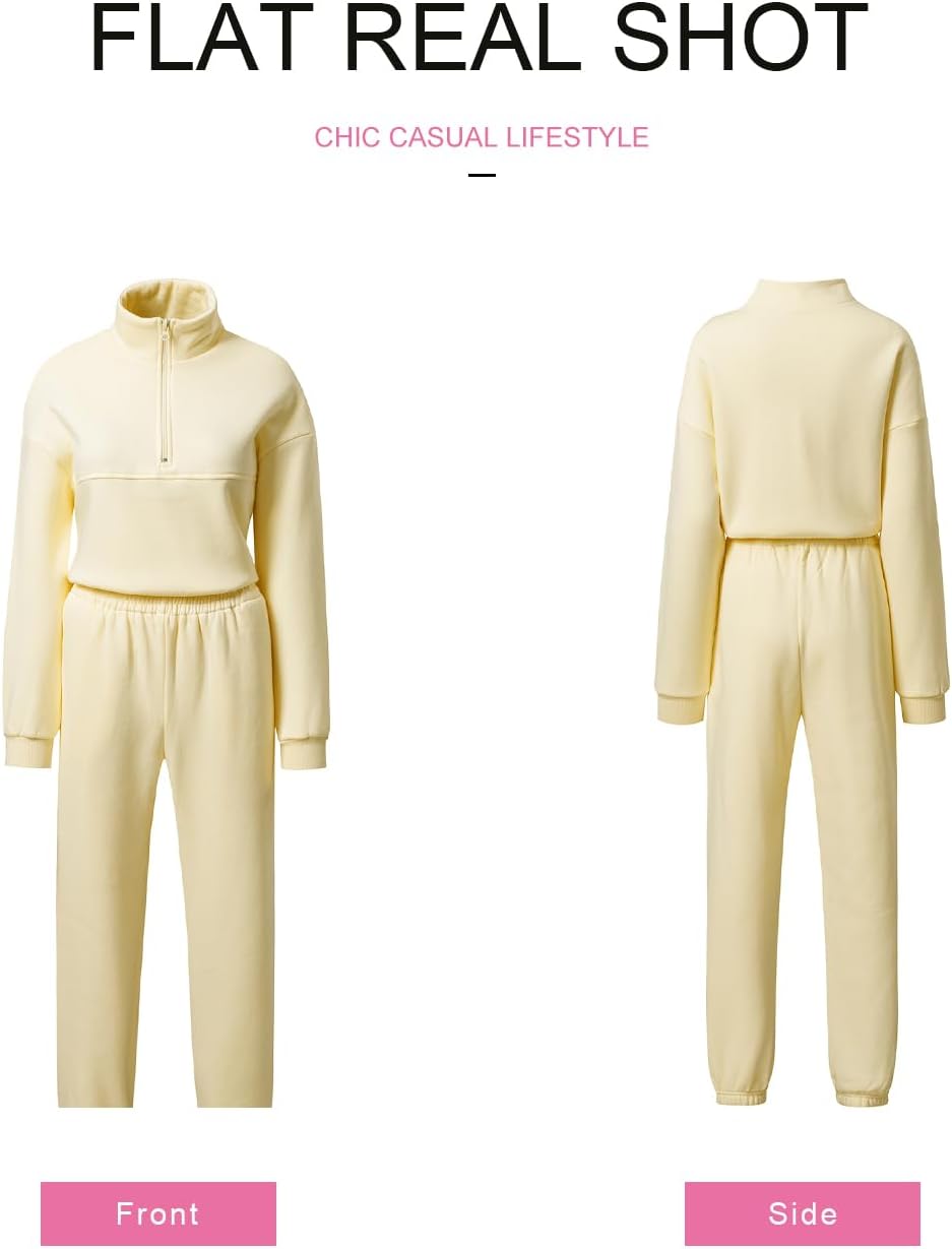 SHEWIN Womens 2 Piece Outfits Sweatsuits Long Sleeve Lounge Sets Oversized Sweatshirt Half Zip Pullover Women Jogger Sweatpants with Pockets