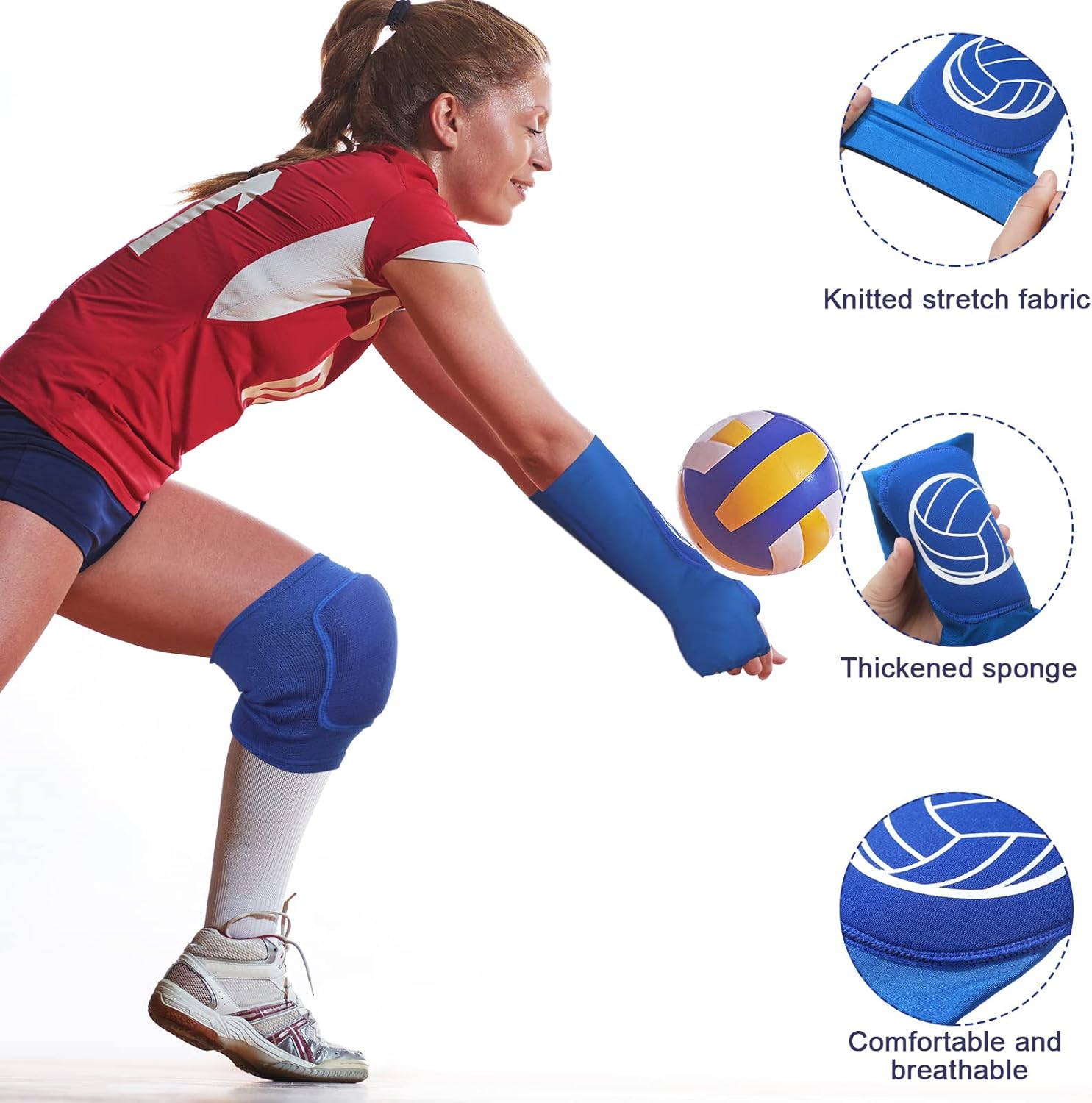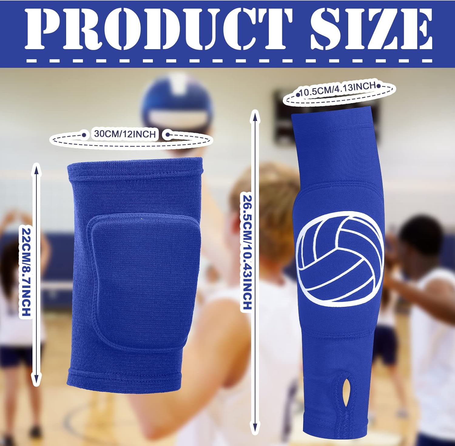 Enough to Meet Your Diverse Needs: you will receive 2 sets of volleyball arm pads and volleyball knee pads, 1 set in black and 1 set in blue, including 2 pairs of volleyball arm pads and 2 pairs of volleyball knee pads; They are about 8 inches in length, suitable for most people, enough to meet your daily use, replacement and sharing needs