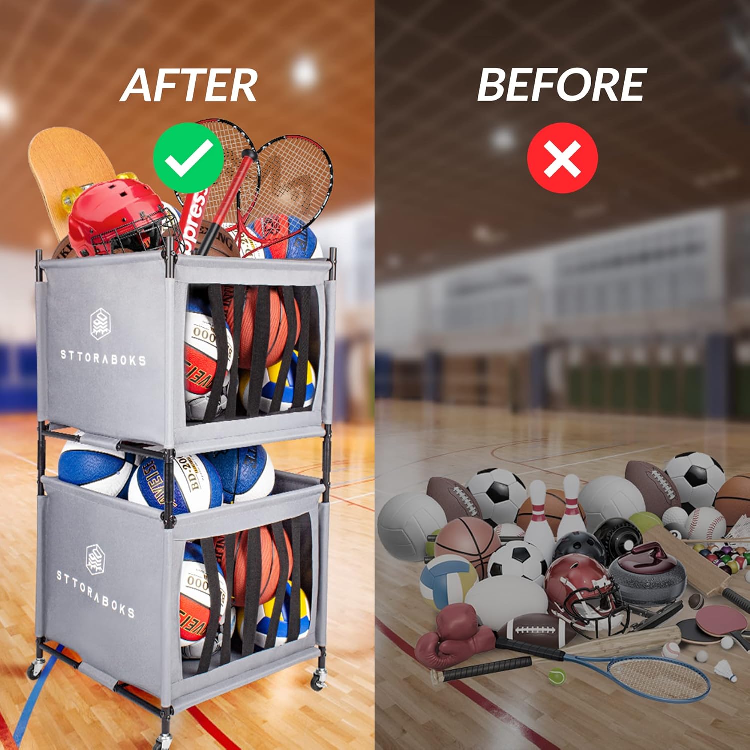 Dimension & Warranty: The dimension of this ball storage cart (2 pack) is 22″(L)x 22″(W) x 47″(H). If there is any question with our product or service, please feel free to contact us. We are always here to provide professional solution for you. If you are not completely satisfied with our ball cart, you’ll get refund to you, no questions asked. We hope to ensure that every customer has a positive shopping experience. Thanks for choosing Sttoraboks.