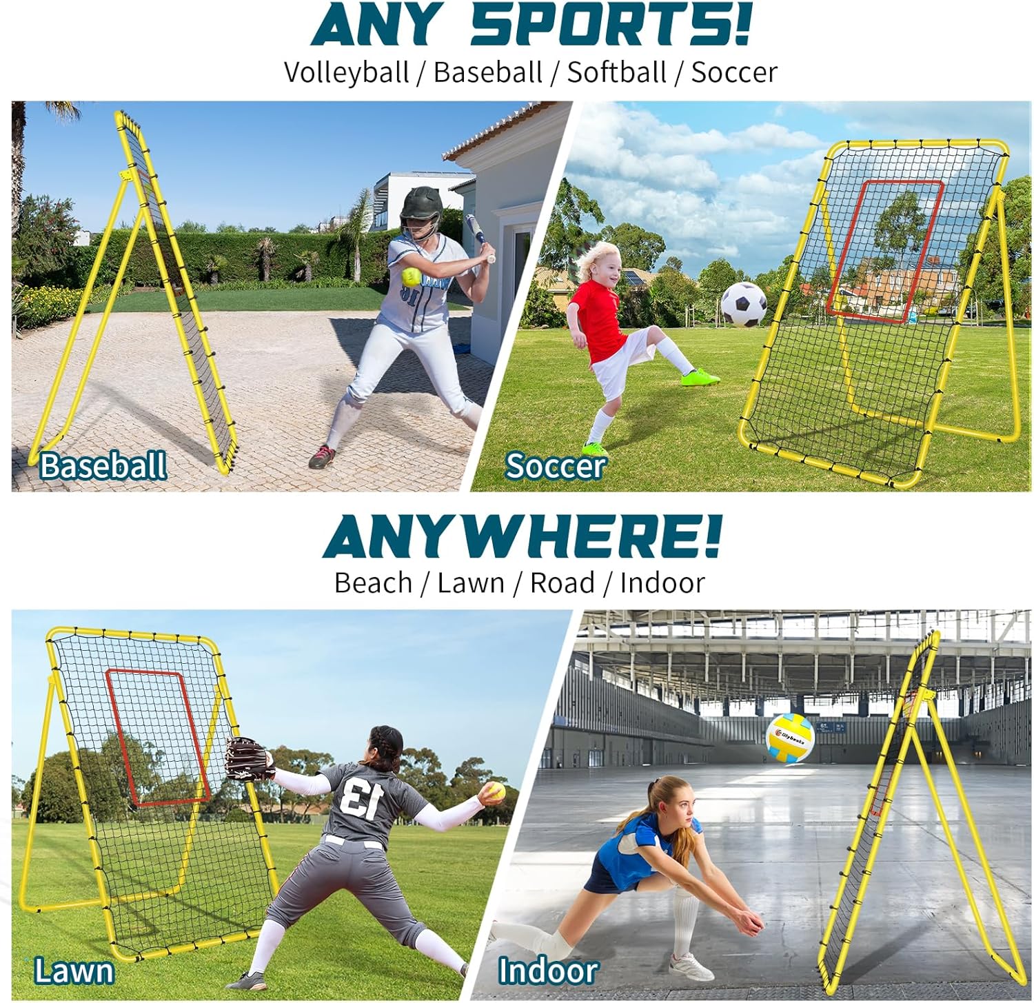 Designed for Multi-Sports Rebounder Training with 5 Adjustable Angles: Olybeaka 7×4 ft Volleyball Rebounder Net offers 28 square feet of practice area for practicing various shots! Players can adjust the Angle to achieve a near-real game experience, improve the training effect. Whether you’re a beginner or a pro, whether it’s for soccer, volleyball, softball, or baseball, this rebound net fits your training needs!