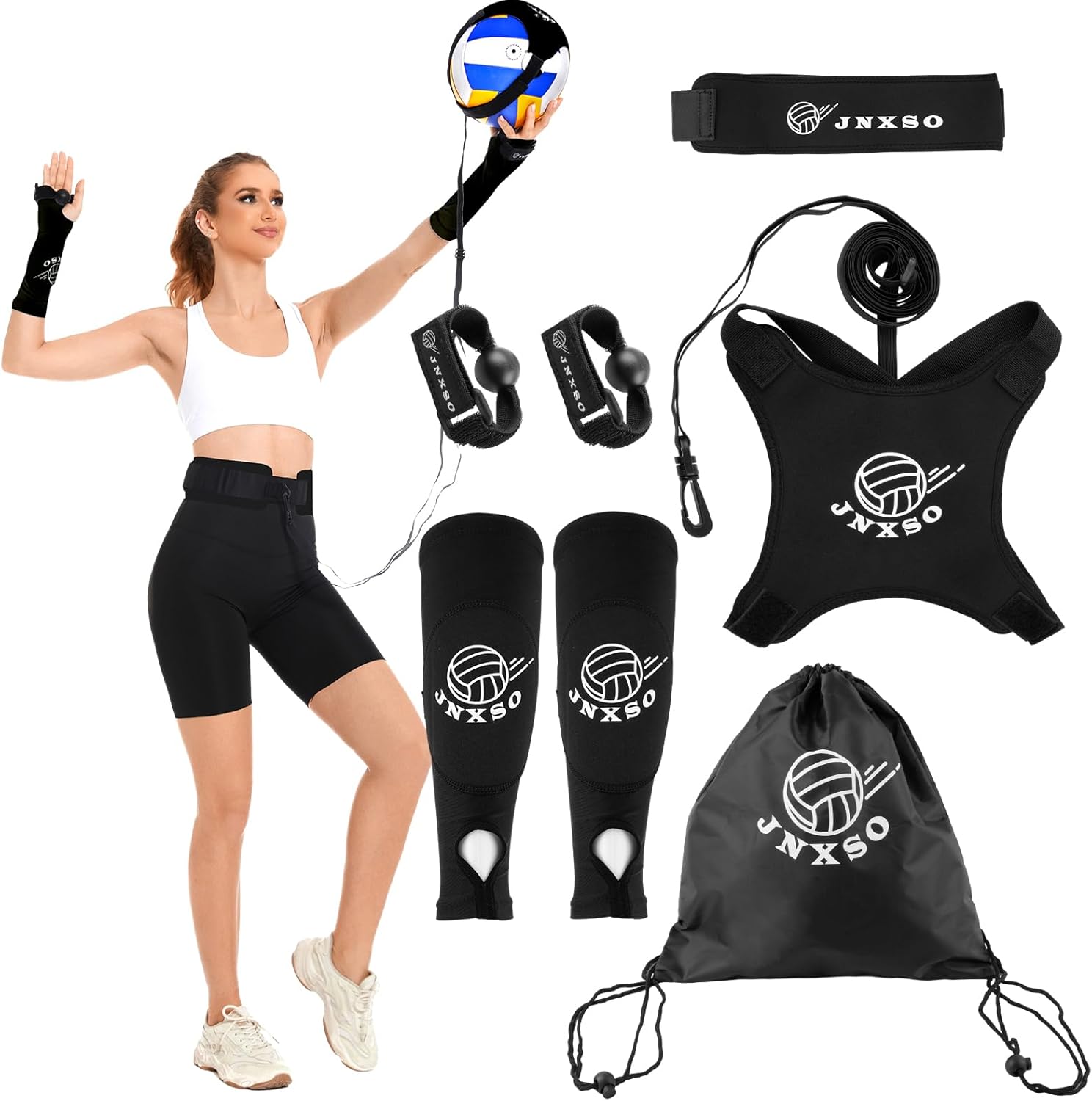 GOOD COMBO SET : You will get a volleyball training set, including 1 piece of drawstring backpack, 1 piece of volleyball fixation device, 1 pair of volleyball passing hitting forearm sleeves, 1 piece of elastic volleyball resistance band, 1 piece of Velcro waist belt and 1 pair of setting hand straps; Suitable for all levels of players from beginners to experts