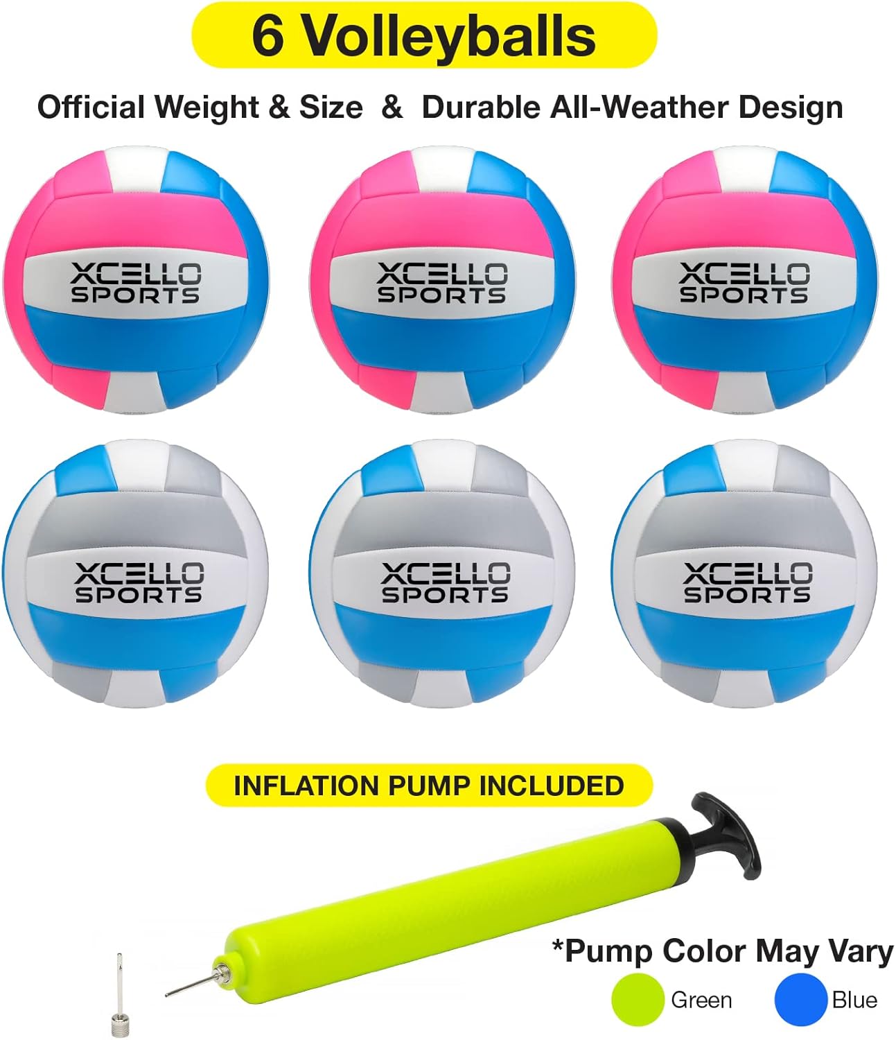 PUMP INCLUDED – Volleyballs include a hand air pump with needle. These Volleyballs ship deflated.