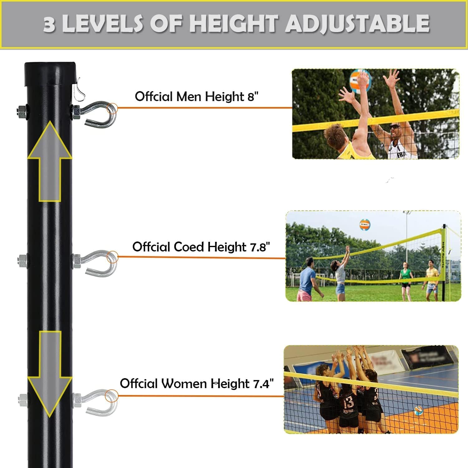 Professional Height Adjustable Size Net: The Volleyball Net Can Be Adjusted In Height With The Locking Knob For Women And Men, Or You Can Adjust The Height Down, Twisted Net Dystem Has a Simple Design And Painless Adjustment Of The Net Tension To Avoid The Net Tension And Sagging In The Middle To Play Volleyball In The Backyard With Family And Friends In a Relaxed Way